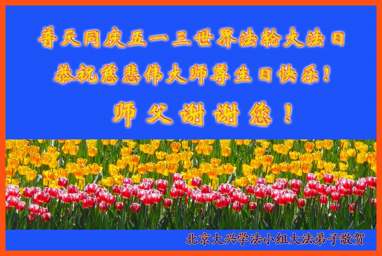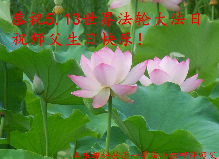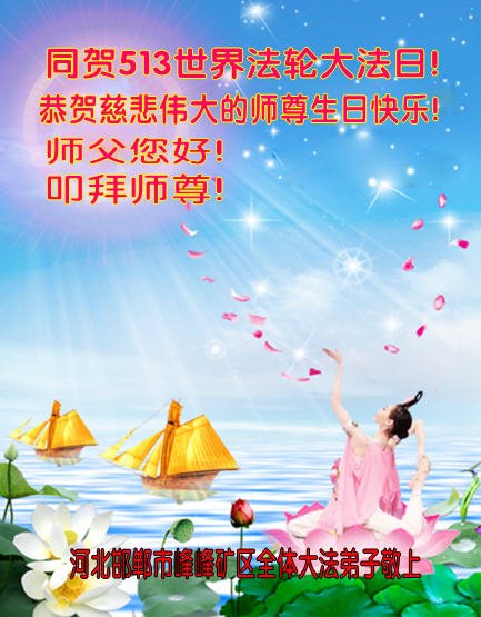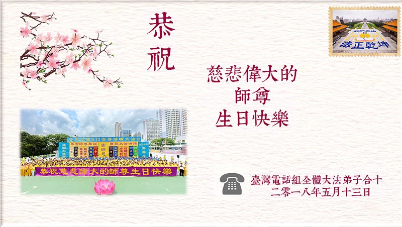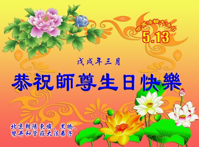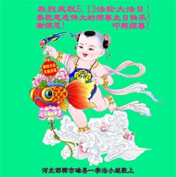5月13日-----世界法轮大法日!在这普天同庆的美好时刻,全球电话组DHT平台紧急接力组全体大法弟子恭祝慈悲伟大的师尊:生日快乐!