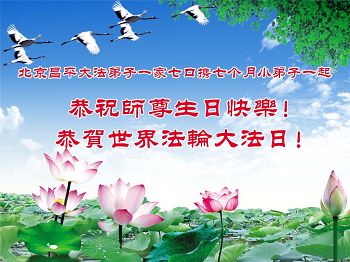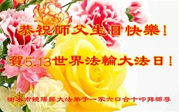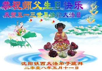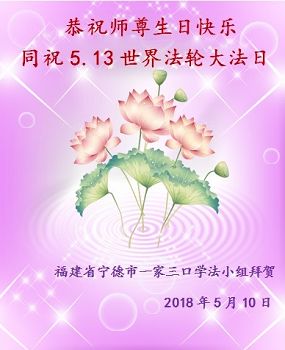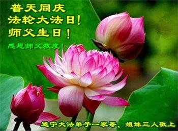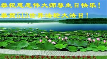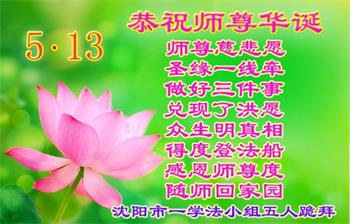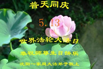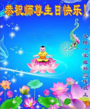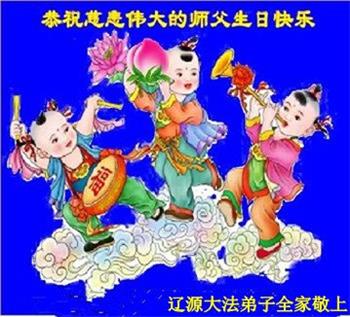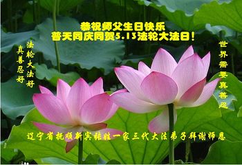 辽宁省沈阳市沈北新区祖孙三代大法弟子恭祝慈悲伟大的师尊生日快乐!恭祝五一三世界法轮大法日!