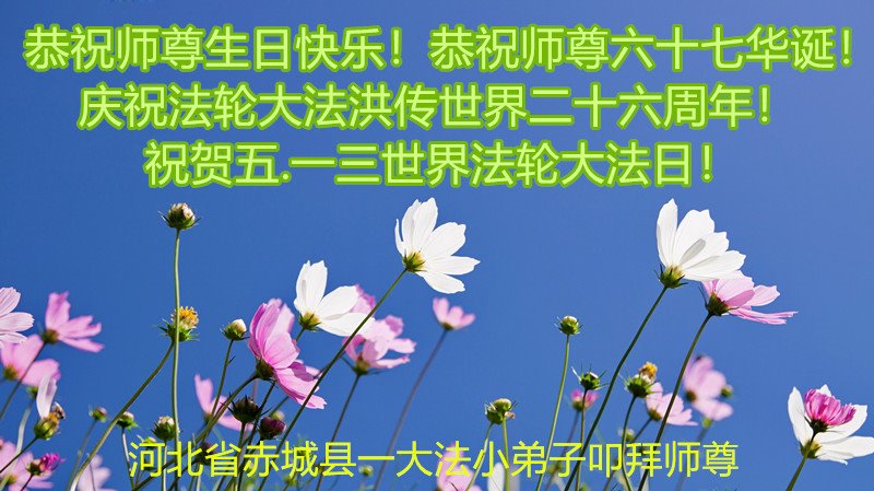 恭祝慈悲伟大的师尊六十七华诞及大法洪传二十六周年。助师正法是我们的责任,救度众生是我们的使命。我们是随师父下三界的古老生命,在生生世世的轮回辗转中没有忘记自己的初心,如今接上圣缘,弟子知道珍惜!不论还有多少个寒来暑往,我们一定会勇猛精進。请师父放心!