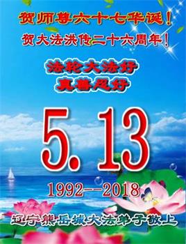 2018年5.13法轮大法日到来之际,弟子再一次敬谢师尊救度!师尊辛苦了!千言万语也无法表达师父的救度之恩!