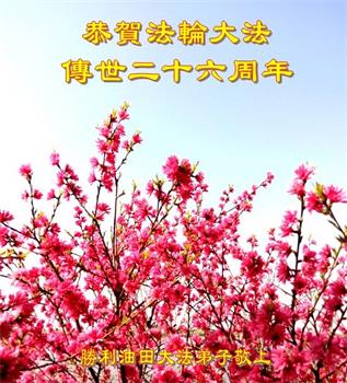 日本大法弟子在贺词中说:“我们是随师父下三界的古老生命,在生生世世的轮回辗转中没有忘记自己的初心,如今接上圣缘,弟子知道珍惜!不论还有多少个寒来暑往,我们一定会勇猛精進。”