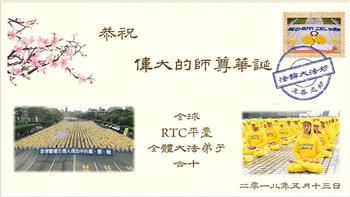 我们收到了来自美国各州、加拿大、墨西哥、澳大利亚、俄罗斯、丹麦、意大利、奥地利、西班牙、爱尔兰、罗马尼亚、芬兰、德国、英国、瑞典、日本、越南、韩国、朝鲜、塞浦路斯、塞尔维亚和黑山、希腊、匈牙利、保加利亚、克罗地亚、拉脱维亚、伊朗、巴西、泰国、印尼、缅甸、马来西亚、新加坡、台湾、香港、澳门、沙特阿拉伯、摩尔多瓦、比利时、挪威、法国、瑞士、阿联酋、捷克、斯洛伐克、波兰、荷兰、波黑、新西兰、土耳其、克里米亚、菲律宾等五十多个国家和地区的大法弟子的贺信。下面是其中的部份贺信贺卡。