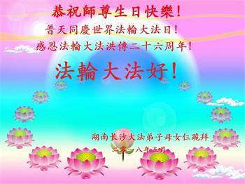 ──湖南高校大法弟子热烈庆祝法轮大法洪传世界二十六周年!