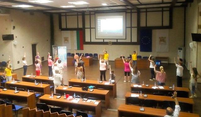 四月二十一日和二十二日,在普罗夫迪夫市科技馆举办的健康节上,法轮功学员举办了教功活动。因要学功的人很多,原订的房间不够用。活动主办者特别允许法轮功学员在阳台上教功。第二天,法轮功学员们还在展厅向参观者发表演说,介绍法轮功,并回答观众的问题。