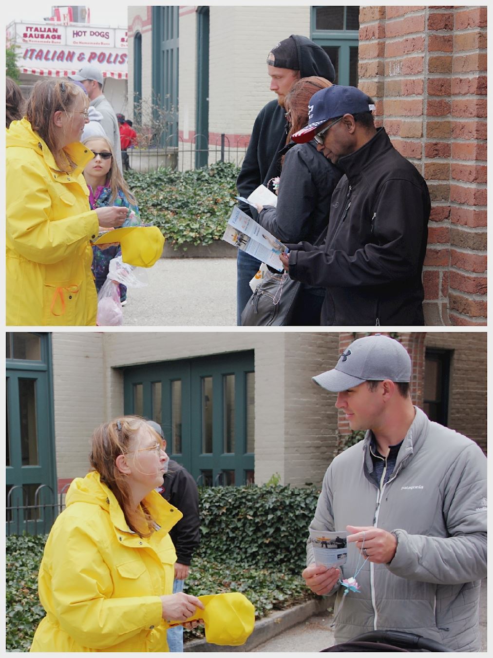 ![]() 图2:法轮功学员在和民众交谈,传递真相 |