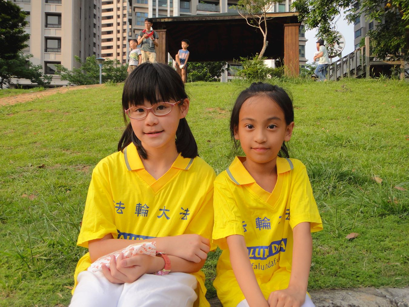 四年级的石维廷和小学三年级的吕芸晏小朋友,从小跟着父母炼法轮功。维廷表示,在学校和同学相处,比较容易包容别人,同学犯错误时她会想,对方不是故意的;同学撞到她,不会一气之下就骂对方,因为想到自己是修炼真、善、忍,就没有去告诉老师。两人除了平时学校的学习,会利用网路平台跟其它地区的大法小弟子一起学法,假日会跟爸爸妈妈到景点去讲法轮功真相。她们在大法修炼中健康快乐地成长。