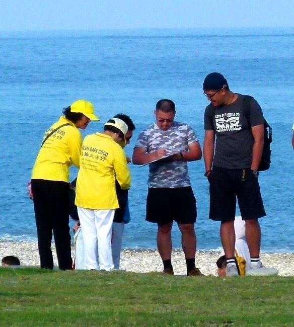 ![]() 图3:台东法轮功学员在台东海滨公园向游客讲真相,传递大法美好。 |