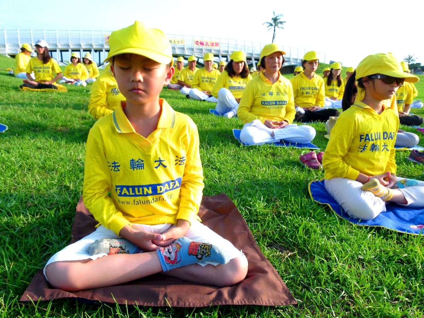 今年是法轮大法洪传世界二十六周年,随着时间推移,许多当年的年轻学员成家立业,许多家庭也诞生了大法小弟子。周六下午,大家扶老携幼共聚在一起,欢庆第十九届“世界法轮大法日”,大法小弟子们在草原上奔跑欢笑,就像个大家庭。集体炼功时,大法小弟子坐在第一排,阳光下也和大人一起静静炼完五套功法。