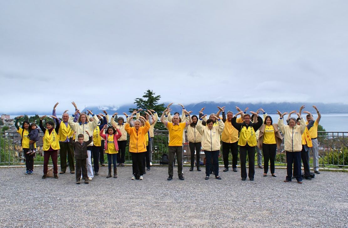 【明慧网二零一八年五月十四日】二零一八年五月十三日,瑞士法语区法轮功学员欢聚在瑞士旅游名城洛桑,集体炼功、学法,共同庆祝世界法轮大法日暨师尊华诞。