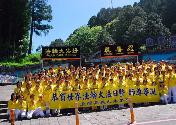 五月十三日,台湾嘉义部份法轮功学员,在阿里山庆祝世界法轮大法日,全体学员合照向师尊祝寿、谢师恩。