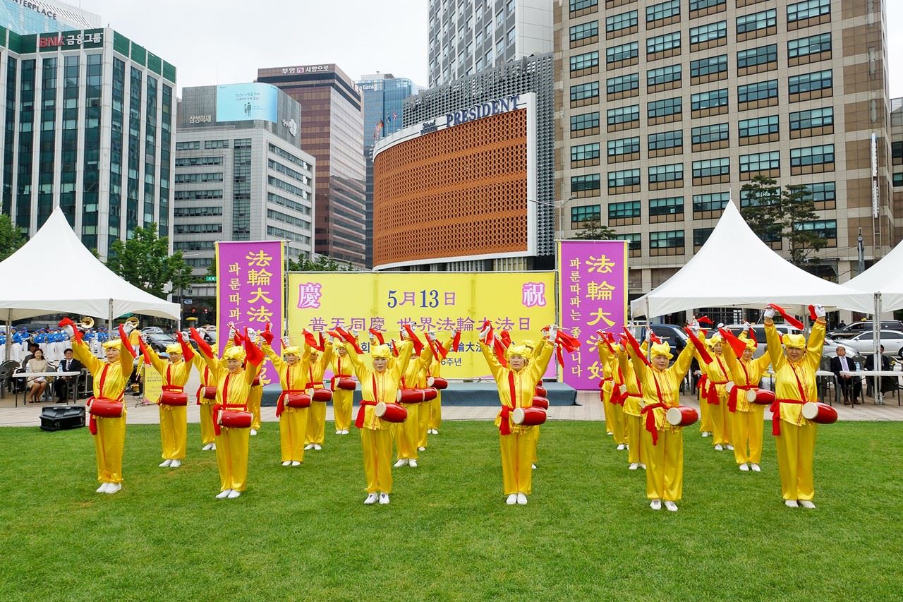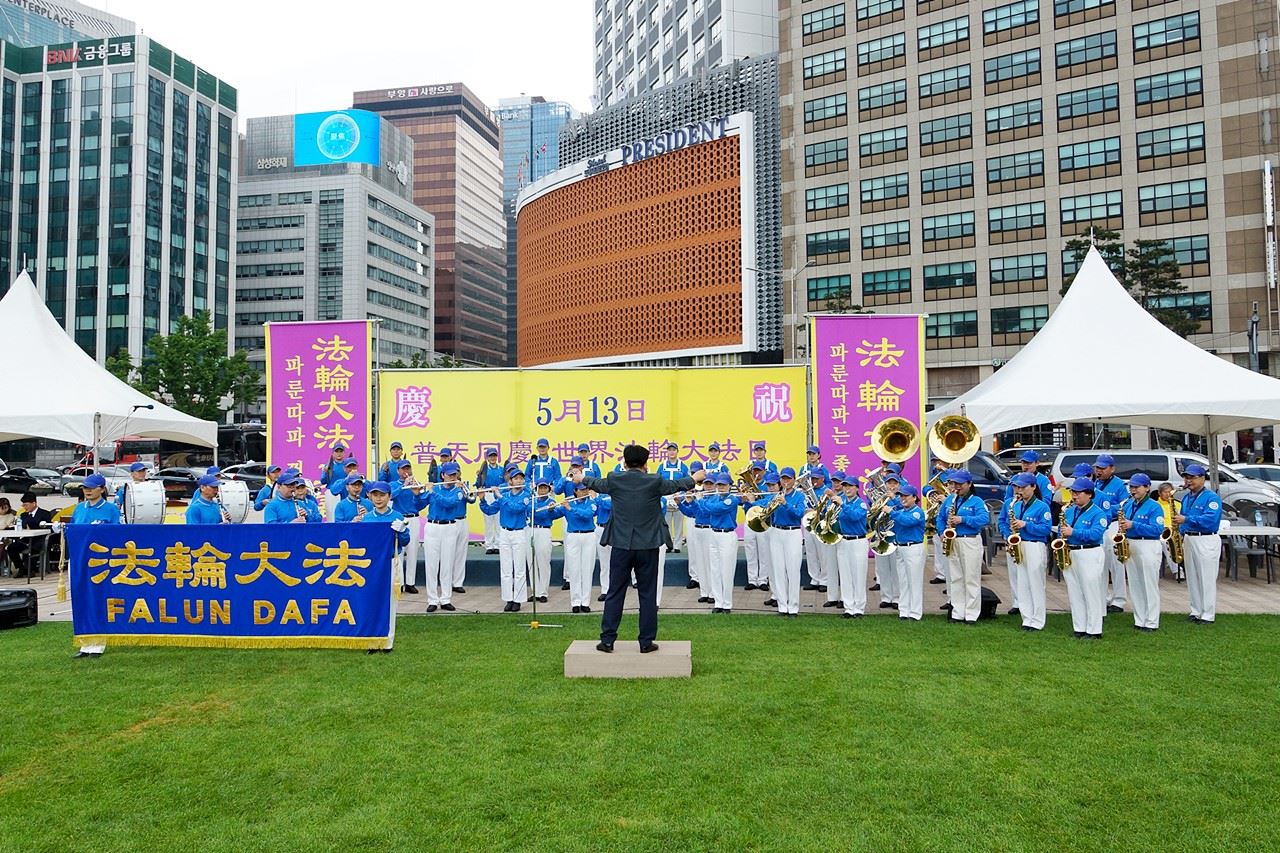 韩国宗教特报员李春燮在庆典机会上发言说:“我数年前去汝矣岛的樱花节第一次看到了法轮功乐团的演奏,当时大吃一惊。不光是特别的服饰引人注目,演奏的音乐实在太清亮干净。当时我有种未来法轮功的时代一定会到来的感觉。心里受到了很深的感动,我联系了法轮功团体,成为了我今天站在这里的契机。