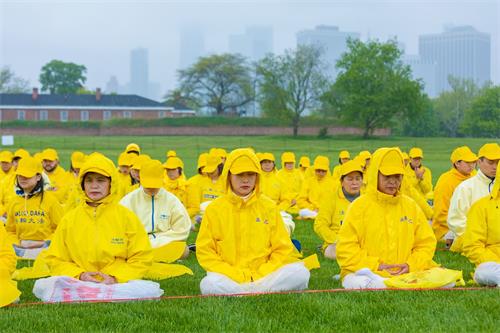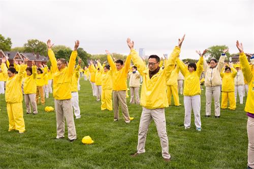 '图4~10:上千纽约法轮功学员排字、炼功,庆祝世界法轮大法日。'