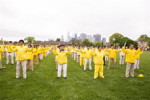 当日,在总督岛生机勃勃的碧绿草坪上,五个金色中文大字“法轮大法好”和金色的英文“5.13 法轮大法日”(5.13 FALUN DAFA DAY),映衬着不远处曼哈顿朦胧的高楼大厦。一幅天然而成的美丽画作,象征着法轮大法将带给曼哈顿及全世界焕然一新的生机。