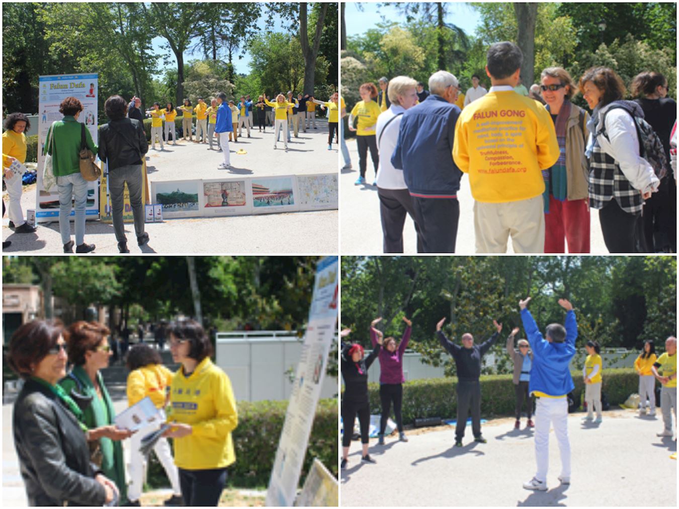 在过往的游人中也不时出现中国游客和已经定居西班牙的华人,他们看到法轮功在国外能够自由的炼功,无不露出惊讶的表情,当了解真相后,有的现场退出中共组织,为自己选择了美好的未来,也有的表示会把真相资料拿给家人和朋友们看。