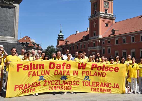 五月十三日,波兰法轮功学员欢聚华沙,集体学法并在市中心古城广场举功法展示等活动,庆祝法轮大法洪传世界二十六周年暨师尊华诞。
