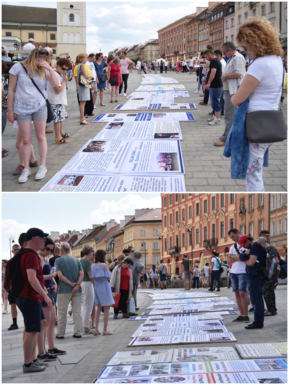近三十米长的法轮功真相展板平铺在古城广场的地上,两个征签台上摆满了各语种法轮功真相传单及反迫害征签簿,法轮功学员用波、英两种语言向民众介绍五一三世界法轮大法日及法轮功真相,吸引了众多游客驻足观看、拍照,了解真相的民众和游客纷纷在反对中共迫害法轮功的征签簿上签字,也有很多人感兴趣学炼法轮功。