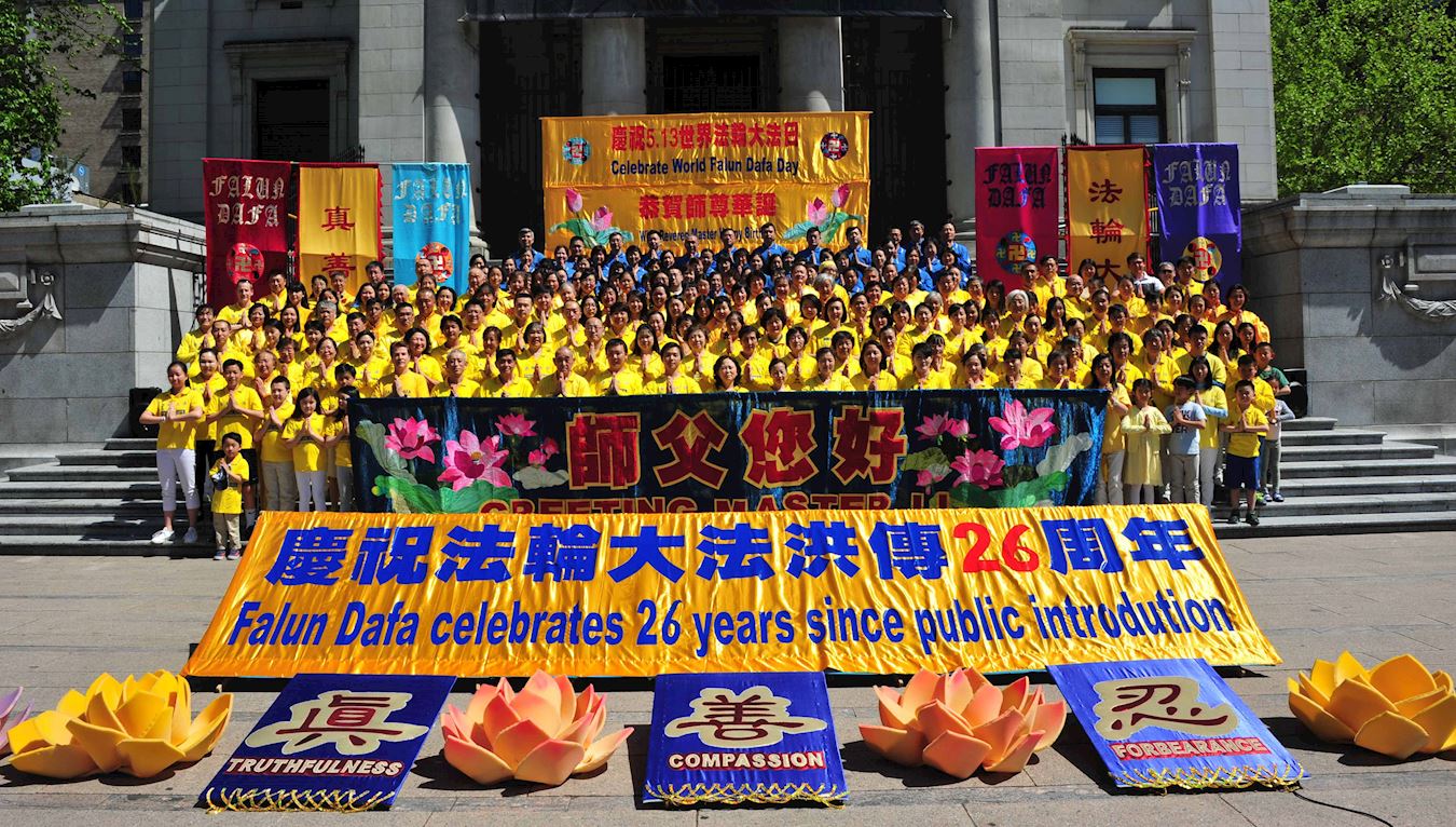 “只有做正义的事情,做真善忍的事情,我们才能得到神的祝福。最后我们向李洪志先生华诞表示祝贺,向全体拥护和支持法轮功的民众表示感谢。”