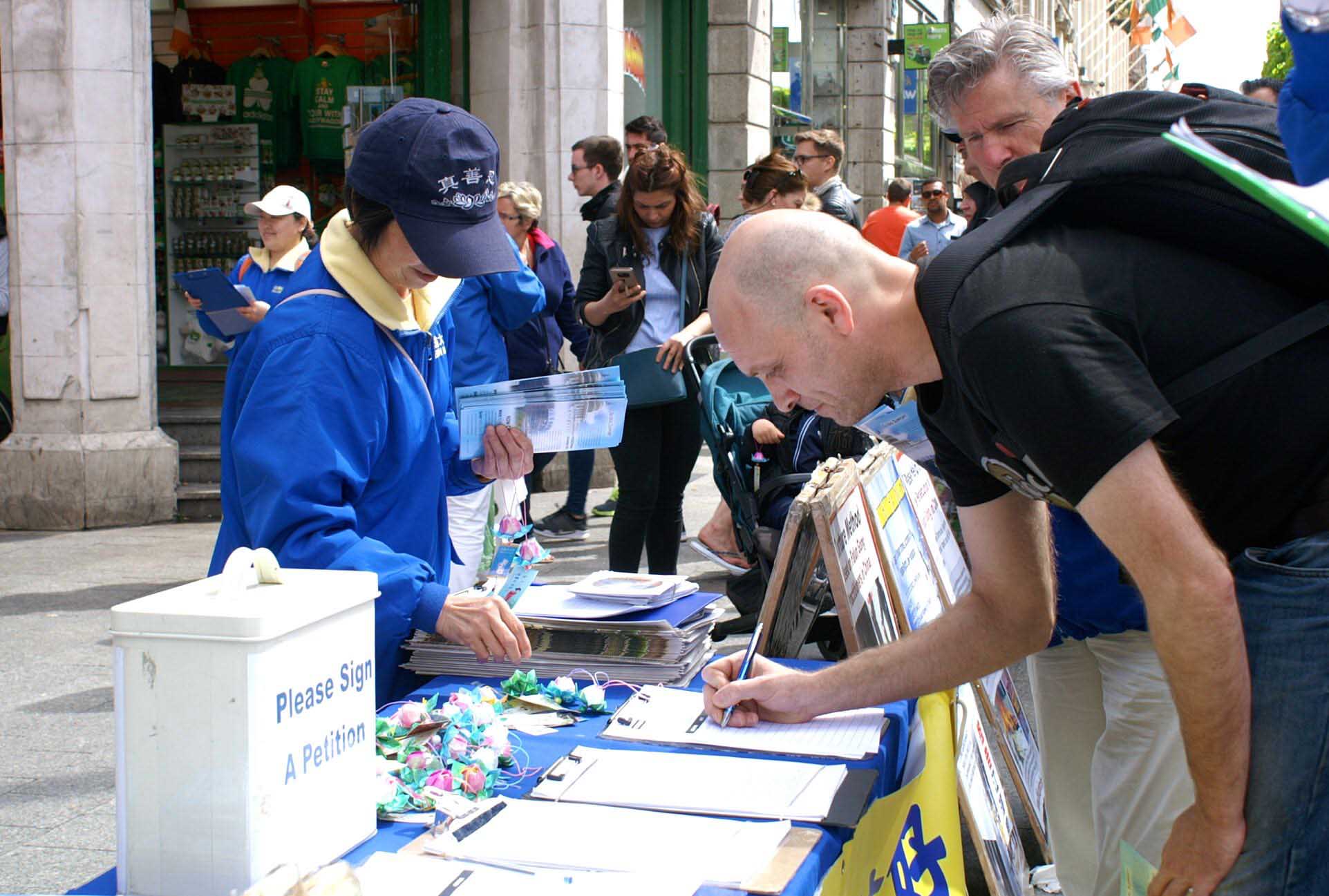 一位在日本教英文的爱尔兰男士说,他在日本就知道法轮功被中共迫害的事并签名反迫害。他表示:“难以置信这样惨无人道的事情还在继续,作为爱尔兰人都应该签名制止迫害!”