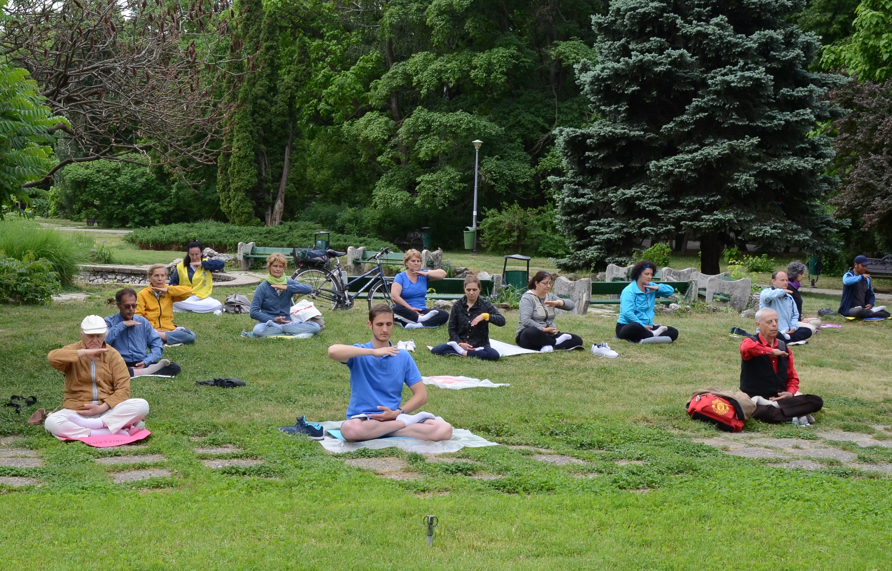 图2:法轮功学员在布加勒斯特著名公园Skatepark Her?str?u集体炼功。