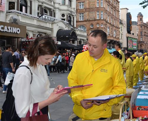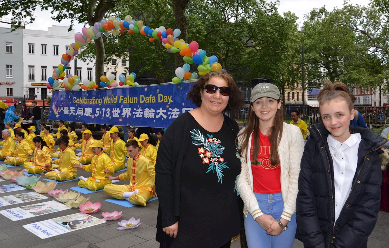 她还说,法轮功学员今天在莱斯特广场举办活动很好,这里人流熙攘,还有来自各国的游客,可以让更多的人知道法轮功及发生在中国的迫害。她表示她自己也一定会帮助传播讯息,让更多的人知道。