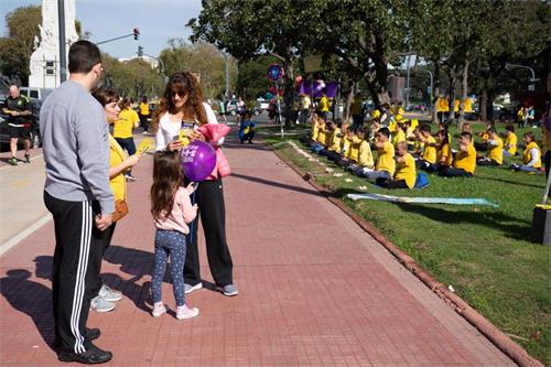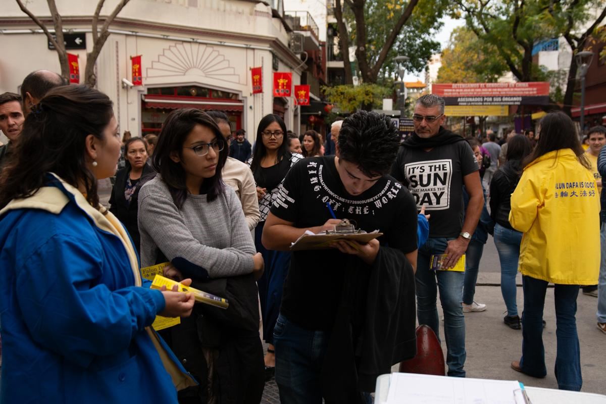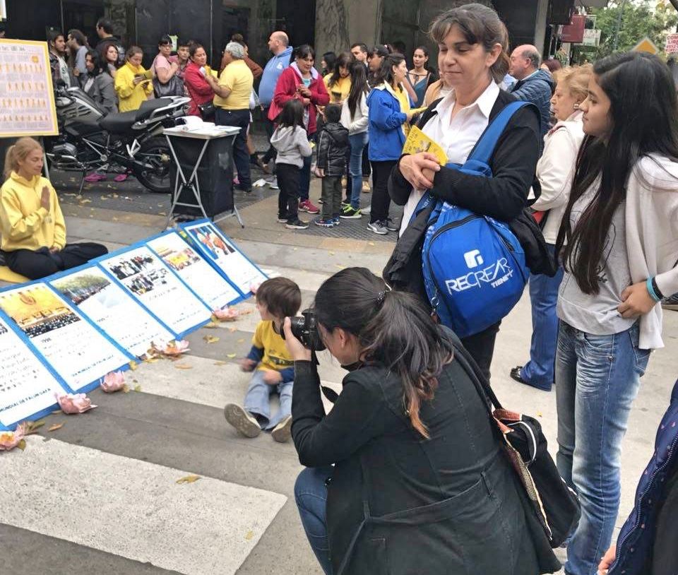 当天下午,学员来到了布宜诺斯艾利斯的华人街,继续传播法轮大法的真相。不少民众得知当日是“法轮大法日”时,很感兴趣,都想了解更多关于大法的真相。