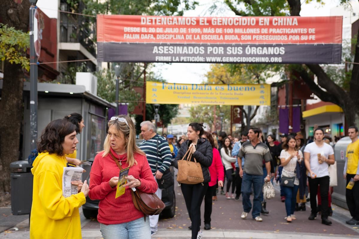 当天,阿根廷的法轮功学员分别在巴勒莫公园(Bosques de Palermo)和唐人街举办讲真相活动,展示法轮大法的美好,同时让人们了解中国在过去十九年里对法轮功学员的残酷迫害