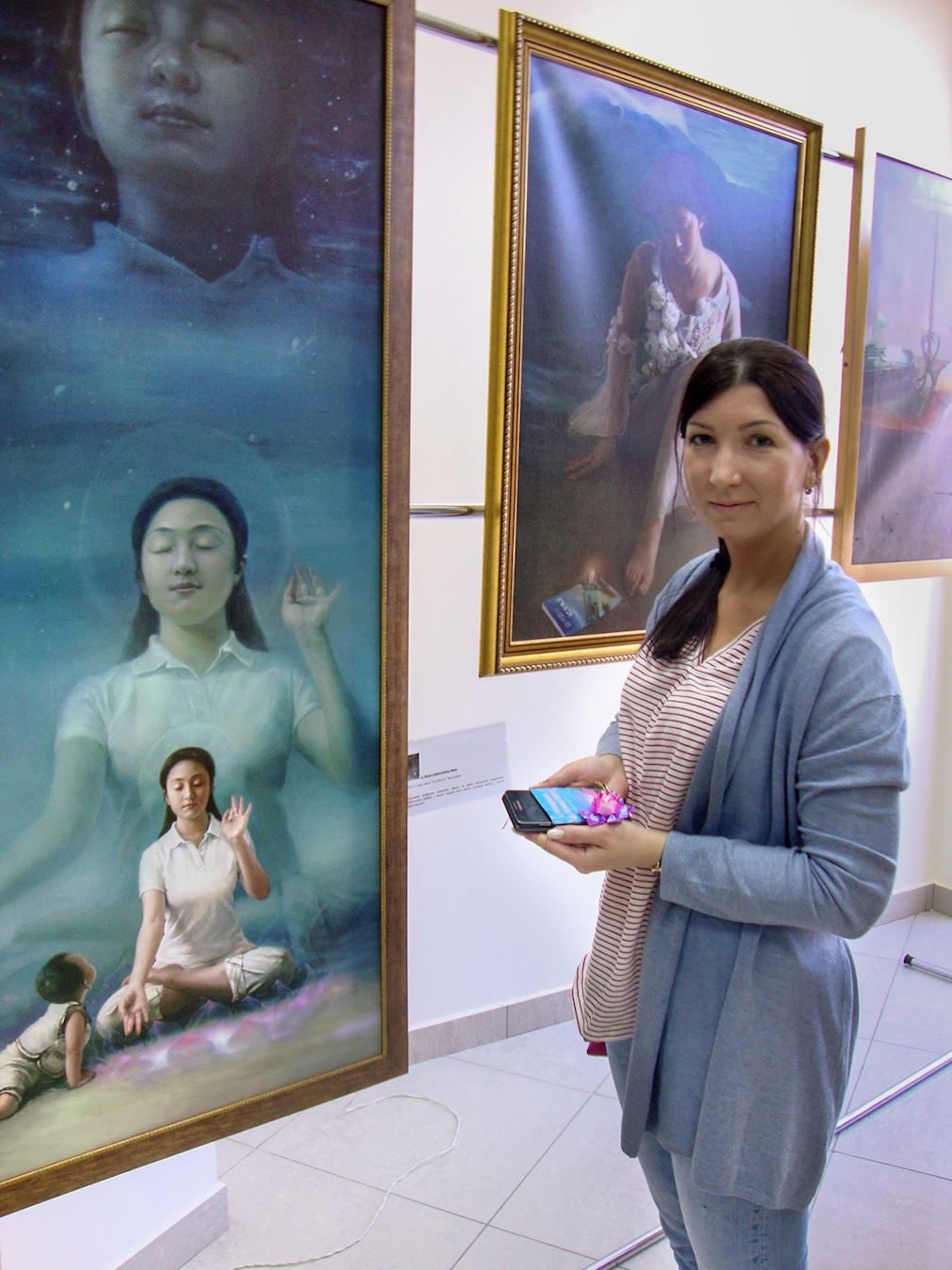 一位名叫娜杰日达的女士是个心理学家,她在留言簿上写道:“这是一个内容丰富、精彩的‘真、善、忍”’艺术展览,让我印象非常深刻,反思人生的真理,变得更善良和宽容。”