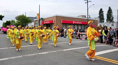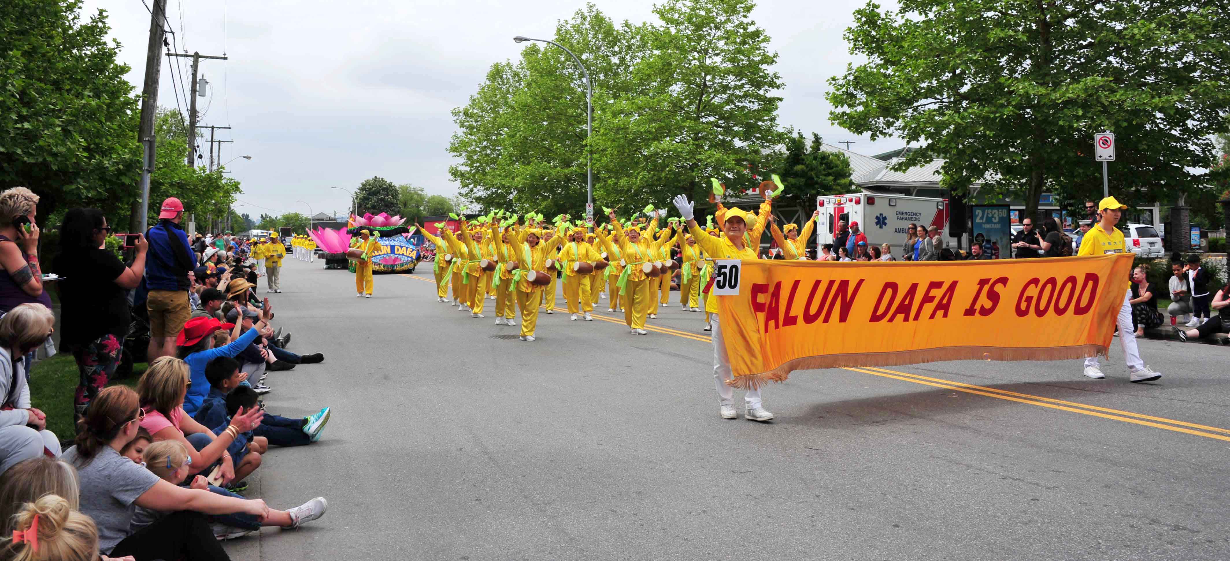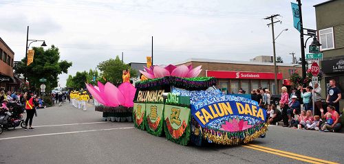 ![]() 图1-4:法轮功学员参加素里市克洛弗代尔牛仔嘉年华游行,给观众带来惊喜 |