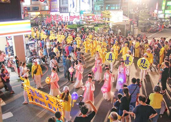 五月二十日,由法轮功学员所组成的“苗栗腰鼓队”及“新唐人台湾旗鼓队”,获选参加台湾苗栗县“头份四月八”创意踩街花灯比赛暨精彩汇客庄踩街活动。