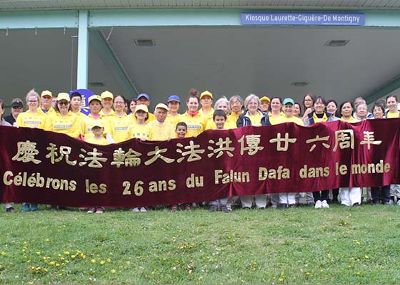 5月19日,魁北克部份法轮功学员举行集会、炼功活动,庆祝“五·一三”世界法轮大法日及法轮大法洪传世界26周年,当地联邦议员和民众到现场支持。