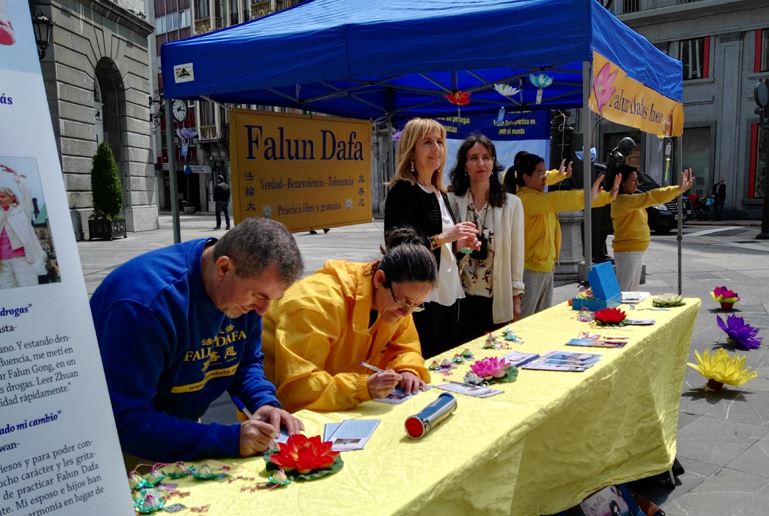 在奧维耶多为期两天的介绍功法活动过得很快。这里的很多民众接到了大法真相传单,了解到法轮大法的美好以及中国正在发生的迫害,有很多人签字声援法轮功学员反迫害。奧维耶多社区中心负责人告诉法轮功学员:“我们将在政府的官方网页上介绍法轮大法,我们也希望每年都举办这样的活动,使更多的人了解法轮大法。”