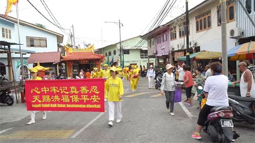 五月二十日,部份法轮功学员选择来到位于霹雳州的一个著名岛屿旅游胜地——邦咯岛(Pulau Pangkor)举行游行,欢庆世界法轮大法日。法轮功学员首次来到当地举行游行,阵容包括天国乐团、舞龙队、仙女队、腰鼓队、以及功法示范队伍的法轮功游行队伍,所到之处普遍获得当地民众的欢迎。
