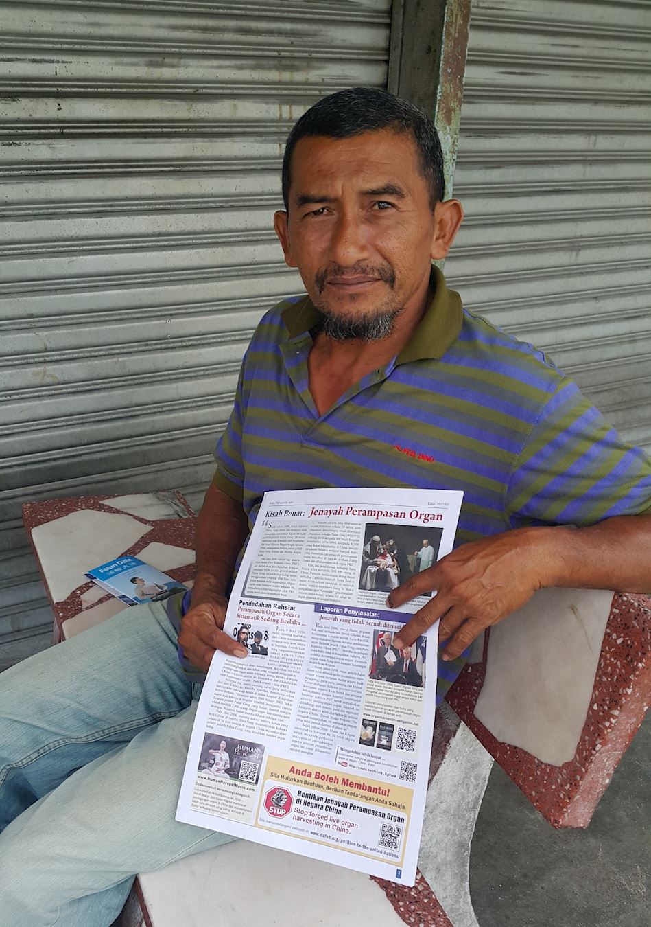 ![]() 图7:当地马来居民Osman先生谴责中共活摘法轮功学员器官太不人道,应该停止。 |