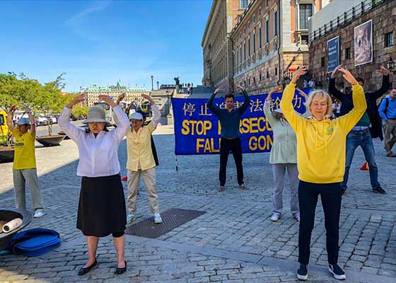 瑞典游客支持法轮功 谴中共迫害