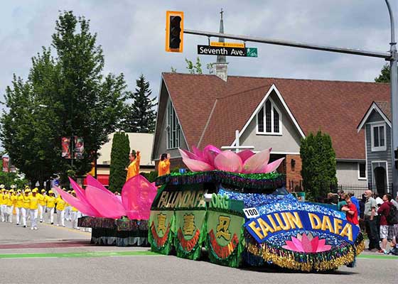 五月二十六日,旨在提倡真正包容和多元文化的社区精神,加拿大新西敏市举办海悦节国际游行,法轮功学员再次参加这个游行,受到观众欢迎。