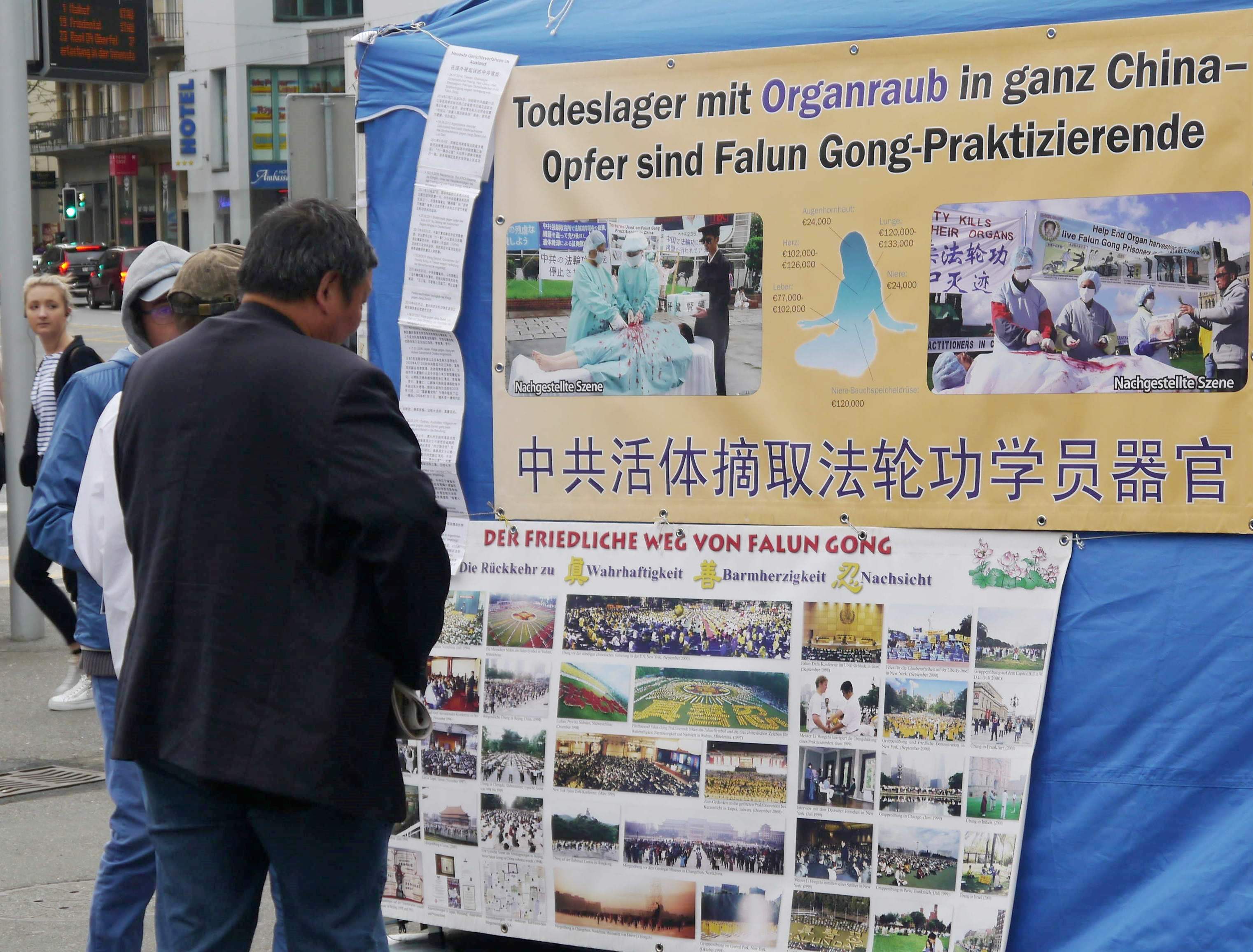 二零一八年五月一日,瑞士法轮功学员在卢赛恩(Lucerne)狮子像附近的狮子广场(Loewenplatz)再次设立了信息摊位,展出内容丰富的中文和德文展板,告诉路人特别是中国游客什么是法轮功,并揭露中共为了诋毁法轮功而散布的种种谎言、诽谤,对法轮功学员的酷刑折磨,甚至活摘法轮功学员器官的罪行。
