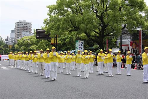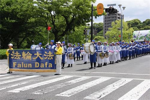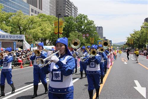 法轮功团体结合当天的节日气氛,表演内容丰富多彩,时而表现气势雄壮,时而展现纯善纯美,时而展露中华传统精湛技艺,场面既欢乐又不失祥和,令人耳目一新。沿途的观众纷纷拍照并热情地挥手致意。有的说:“太美了,乐队的演奏很精彩,我在东广岛市有认识的法轮功学员。”有的说:“不但服装漂亮,演奏的音乐也很有气势,听起来真好。”