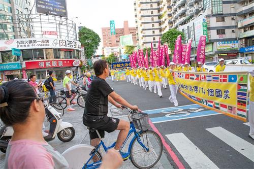 ![]() 图2:法轮功学员在高雄市中心游行,庆祝世界法轮大法日 |