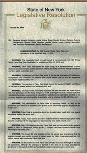 鉴于,在世界法轮大法日缤纷多样的庆祝活动每年都在纽约州和世界各地举行, 以感恩法轮大法给修炼人带来的益处,并借此向更多的人介绍法轮大法, 同时把法轮大法修炼者在中国受到的迫害向社会各界揭露;现在,因此,