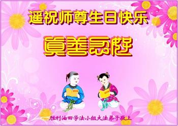- 教育系统大法弟子恭贺世界法轮大法日暨师尊华诞(19条)- 尊敬的师父:弟子在学法中学的不好,不精進,三件事没做好,请师父原谅弟子,以后弟子一定要学好法,精進实修,做好三件事。
