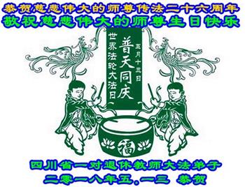 - 成都大法弟子恭贺世界法轮大法日暨师尊华诞(20条)- 恭祝师尊生日快乐!师尊为弟子们付出的太多太多,弟子无法用语言来言表,弟子只有多学法,做好师尊要求的三件来回报师恩。
