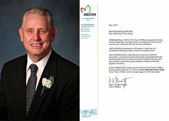- 渥太华市长宣布法轮大法日(图)- 二零一八年,渥太华市长吉姆·沃森连续第八年代表市议会宣布五月十三日为“渥太华法轮大法日”。