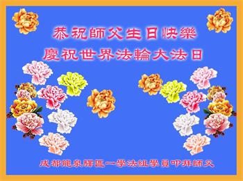 • 成都大法弟子恭贺世界法轮大法日暨师尊华诞(24条)