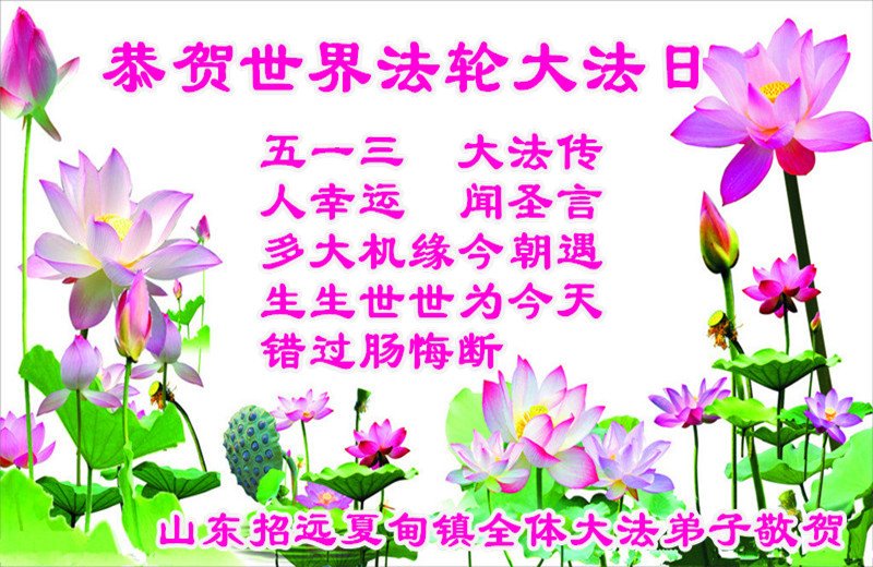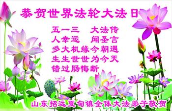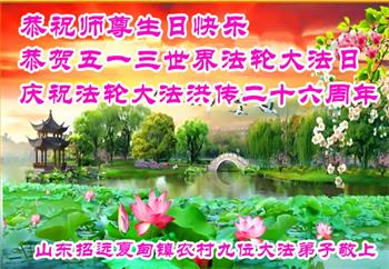 • 山东大法弟子恭贺世界法轮大法日暨师尊华诞(20条)