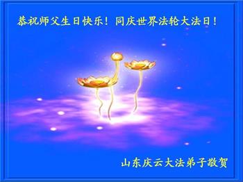 • 山东大法弟子恭贺世界法轮大法日暨师尊华诞(21条)