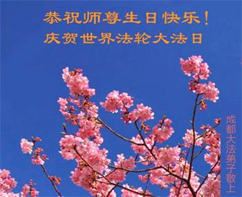 • 成都大法弟子恭贺世界法轮大法日暨师尊华诞(21条)