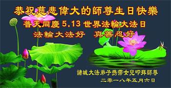 • 江苏大法弟子恭贺世界法轮大法日暨师尊华诞(22条)