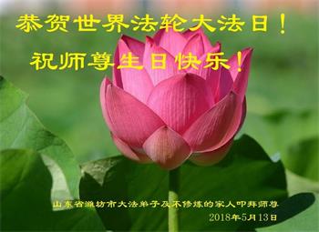 • 潍坊大法弟子恭贺世界法轮大法日暨师尊华诞(20条)