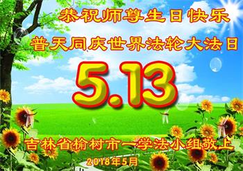 • 吉林市大法弟子恭贺世界法轮大法日暨师尊华诞(19条)