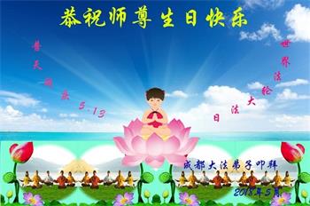 • 成都大法弟子恭贺世界法轮大法日暨师尊华诞(20条)